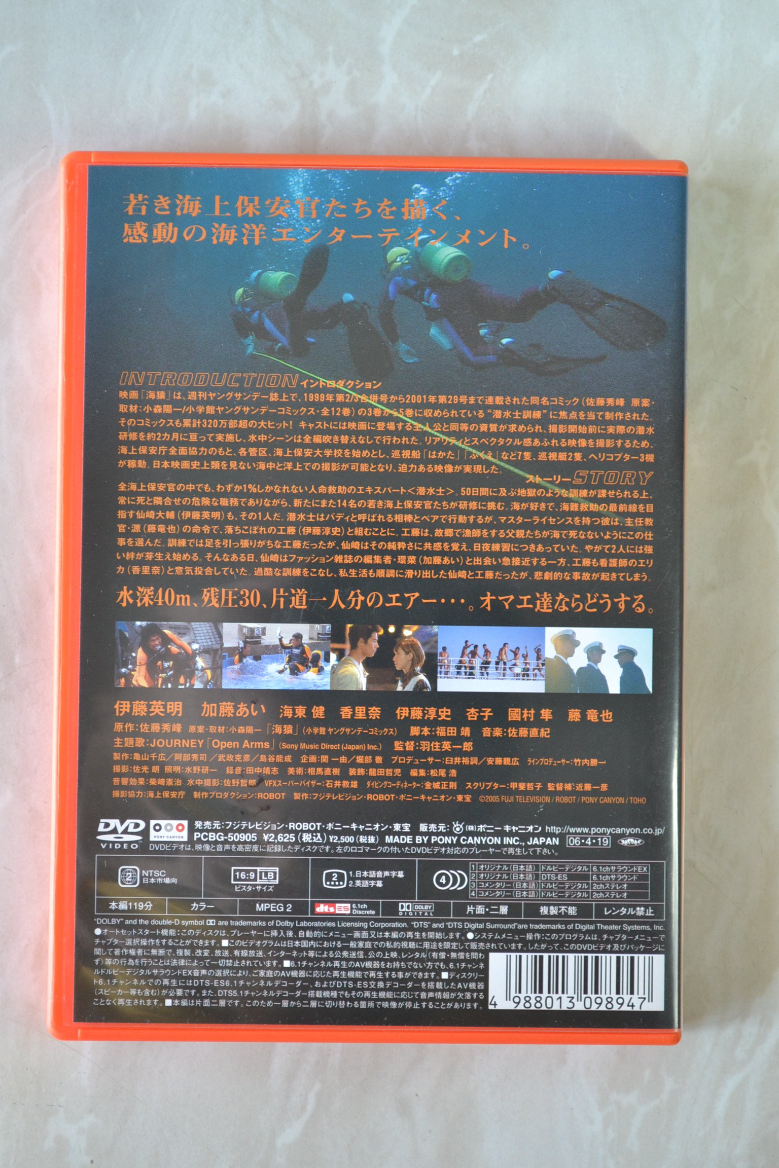 すべての海上保安官の中でわずか1%の人間しか到達できない海難救助のエキスパート“潜水士”。海上保安官14名が死と隣合わせでもあるこの“潜水士”を目指して、50日間に及ぶ極限の訓練に挑んでいくことになるのだが、ある哀しい事故が起きて…。 最近ひねた演出が目立つ中で、この映画では驚くほど素直な演出を見せている。直球すぎて、キスシーンにジャーニーの主題歌が重なる場面などは、見てて照れてしまうほど。だがそれゆえに辛く苦しい訓練に耐え、1人前の潜水士になろうとする男たちの友情にストレートに感動して泣ける。さらに実際に出演者は合宿状態で過ごし、役名で呼びあうなど訓練生同様の生活をしたおかげで、カナヅチだった伊藤淳史は潜れるように。そのドキュメンタリーのような要素がドラマに深味を与えている。(横森 文)