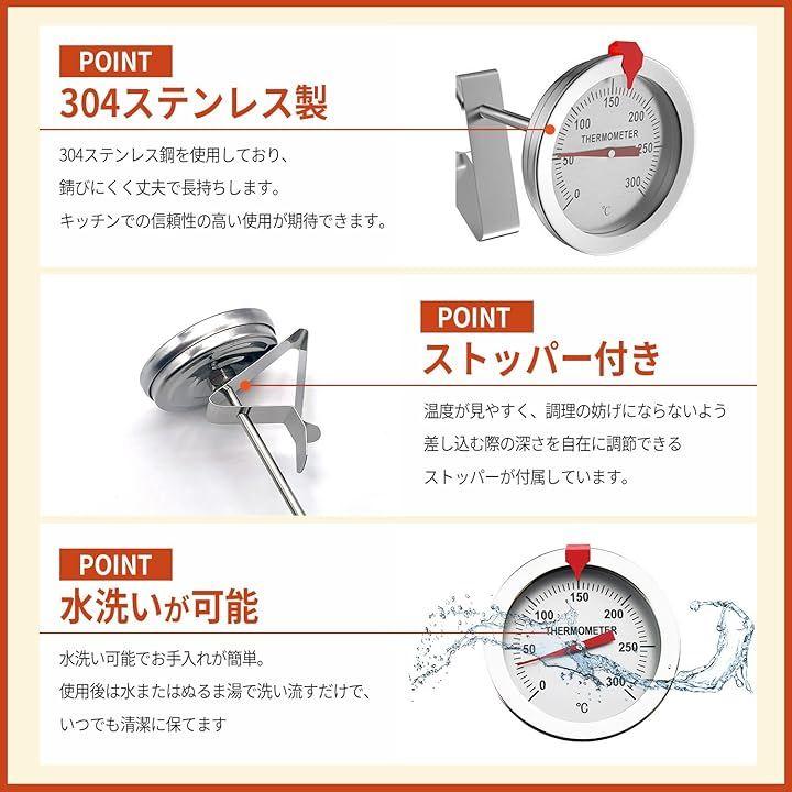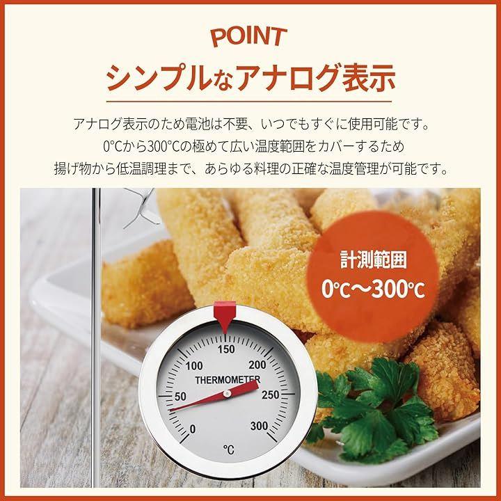 0℃から300℃の極めて広い温度範囲をカバーするため、揚げ物から低温調理まで、あらゆる料理の正確な温度管理が可能です。