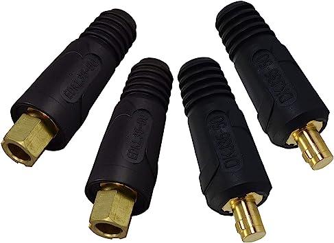 TIG溶接およびプラズマカッター機用溶接ケーブルクイックコネクタオス&メスDINSEスタイルの接続。 200Amp-300Amp電流定格のAWGワイヤ#4-#1(35-50平方ミリメートル)の場合。2個EDKL35-50 300Aユーロスタイルケーブルコネクタ2個DKJ35-50 300Aユーロスタイルケーブルコネクタ