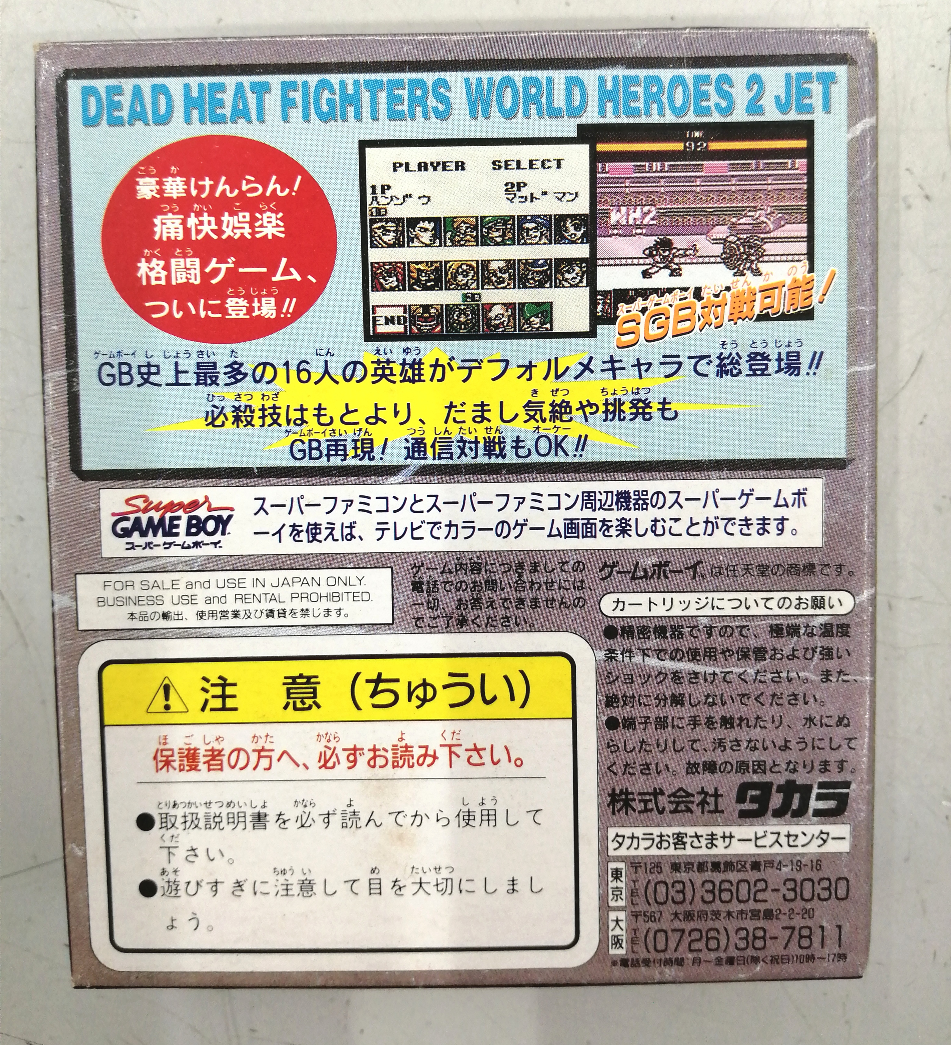 激闘ワールドヒーローズ2JET DMG-AWJJ-JPN TAKARA ゲームボーイソフト TAKARADMG-AWJJ-JPN激闘ワールドヒーローズ2JET