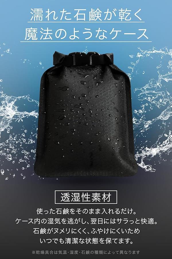 「濡れた石鹸もスッと乾く。透湿性素材の自然乾燥構造」高性能透湿性素材を採用し、濡れた石鹸もケース内で自然に乾燥しやすいのが特徴の石鹸ケースです。