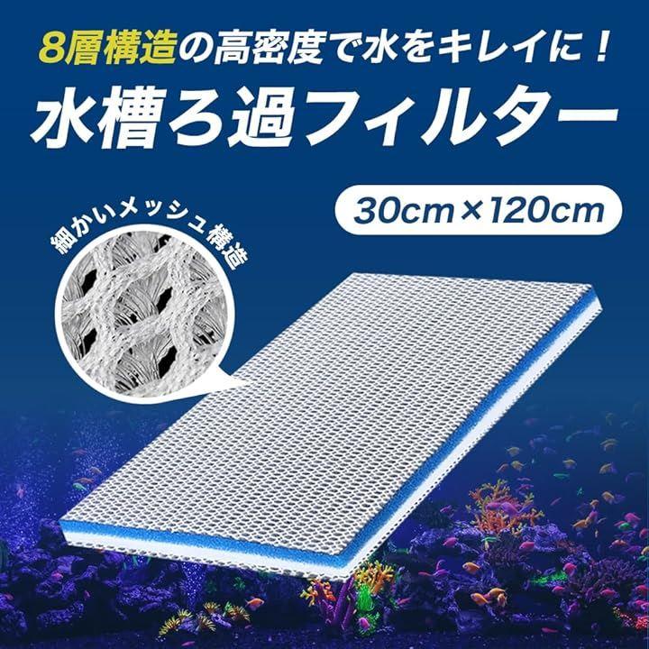 本製品「水槽ろ過フィルター 30cmx120cm フィルターマット 8D繊維」は、独自の8D立体繊維構造を採用しており、従来のろ過マットに比べて格段に優れた濾過力と耐久性を実現しています。