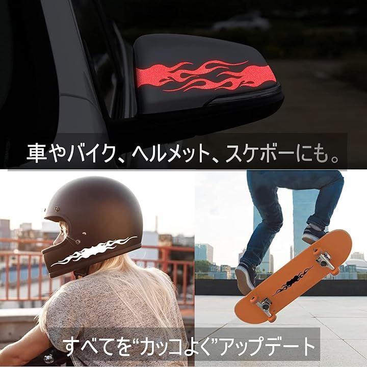 炎デカール「炎フレイム」は、車やバイク、ヘルメット、スケートボードなどあらゆるギアを一瞬でクールにカスタムできる反射ステッカーです。