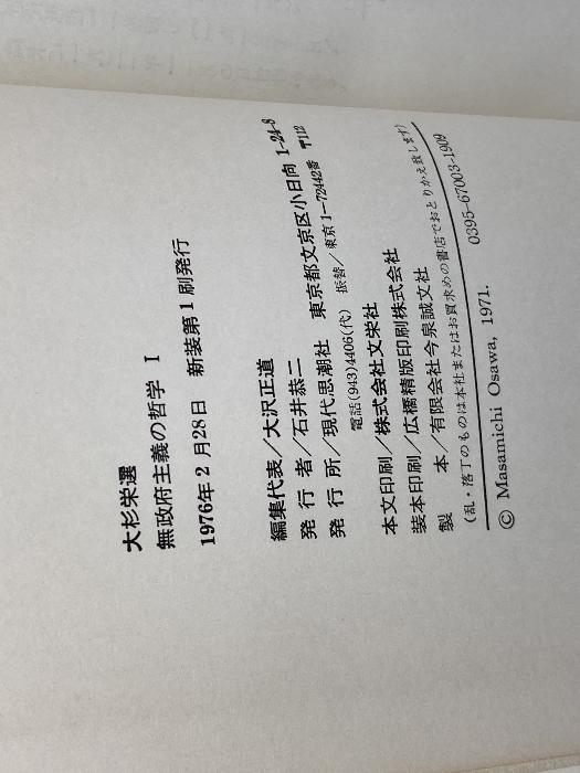 商品名:無政府主義の哲学1 大杉栄選 現代思潮社 76年