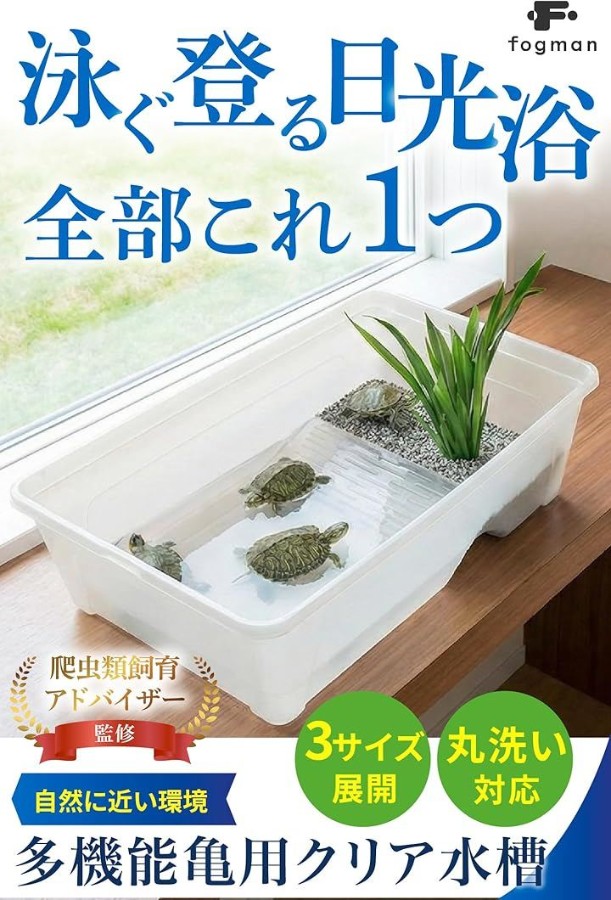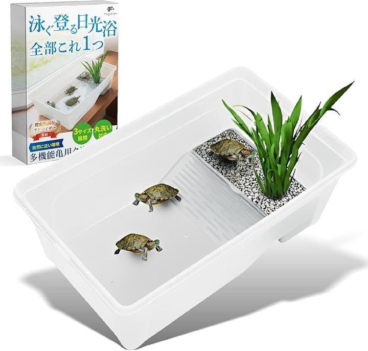 「自然に近い水陸構造」 遊泳・陸地・日光浴を一つにまとめた設計で、亀の本来の行動を妨げにくく、ストレスを抑えた飼育環境を実現します。