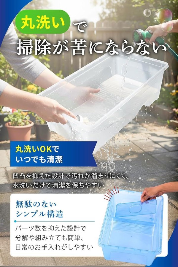 「洗いやすいシンプル設計」 凹凸が少なく、丸洗い可能。