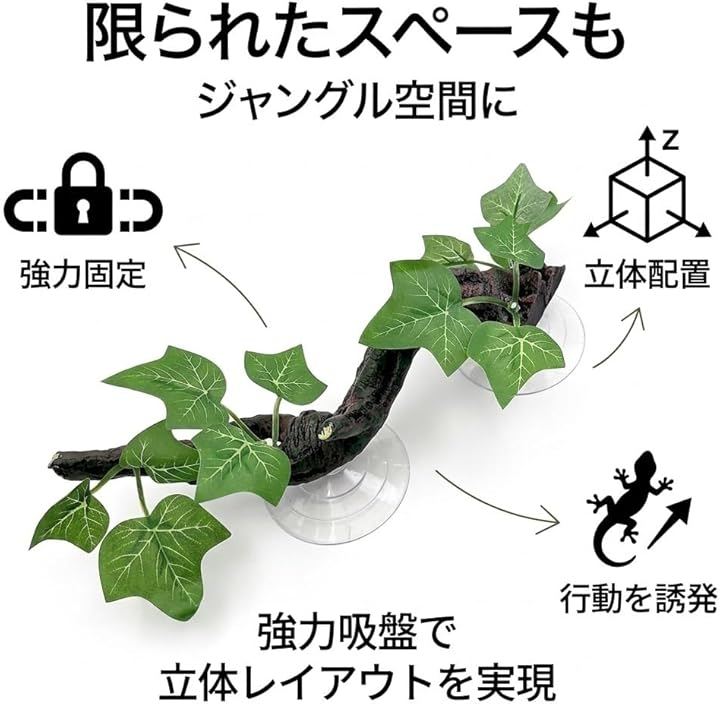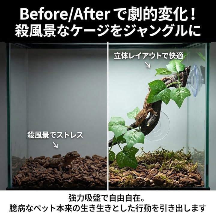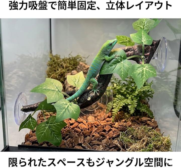ケージ内をジャングルのように演出し、トカゲ、ヤモリ、ヘビ、カエルなどの爬虫類や両生類がストレスなく快適に過ごせる環境を作ります 。