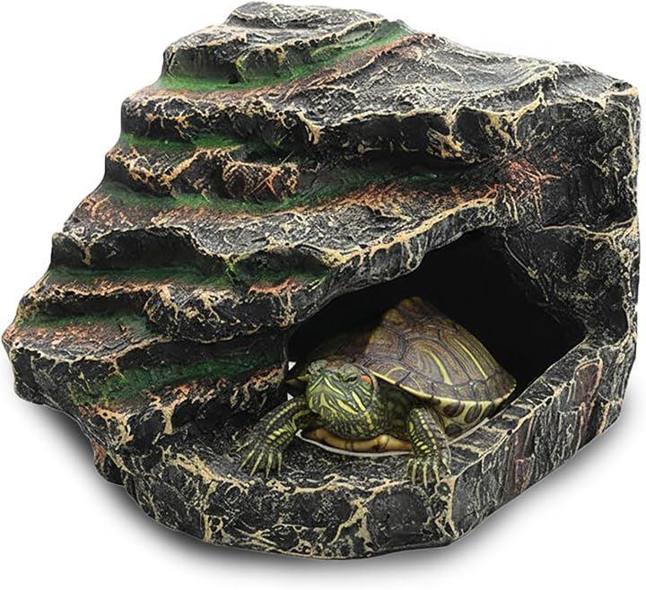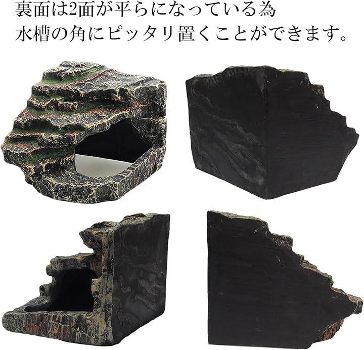 爬虫類 隠れ家シェルター:自然な岩の洞窟で、あなたのペットに快適な休憩場所を。 爬虫類や両生類、魚類など幅広いペットに利用できる、自然な岩を模した隠れ家シェルターです。