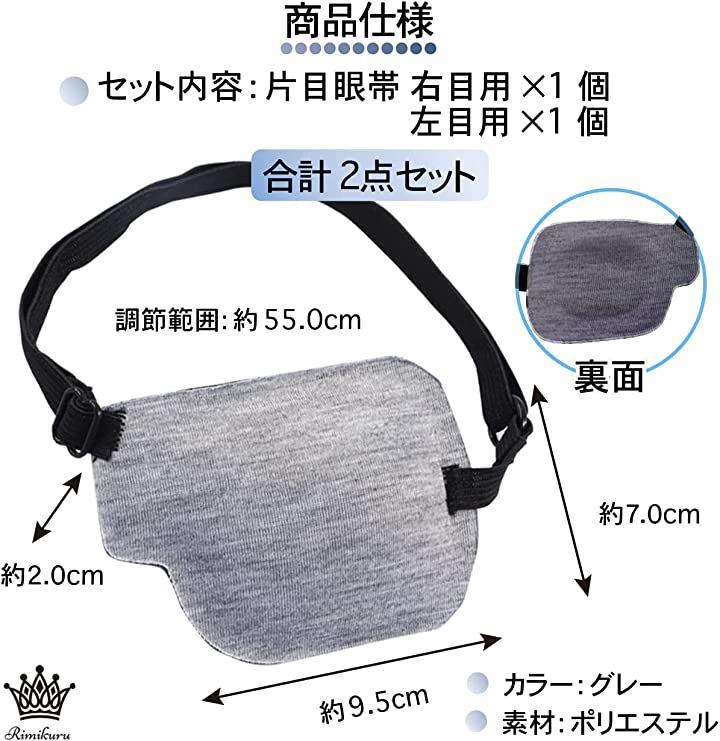 ・「商品仕様」セット内容:片目眼帯 右目用x1個 , 左目用x1個 合計2点セット カラー:グレー サイズ:約9.5cmx7.0cmx2.0cm ストラップ調節範囲:約55.0cmまで 素材:ポリエステル *モニターの環境等により、色の見え方に若干差が生じる場合がございます。