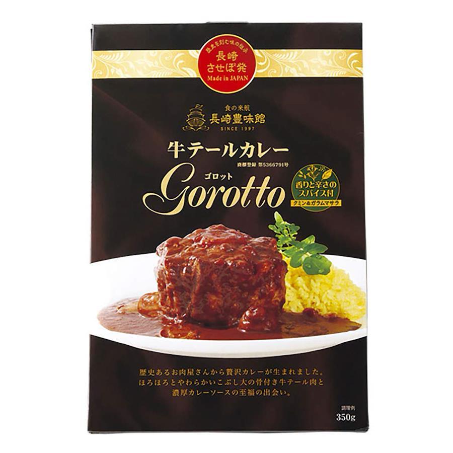 佐世保発、贅沢カレーの牛テールカレー「ゴロット」。袋から出したときの驚きと感動をぜひ味わってください。骨付きのまま、まるごと煮込んだテールは、スプーンでほぐせる柔らかさです。55年の歴史あるお肉屋さんから生まれた贅沢カレーです。
