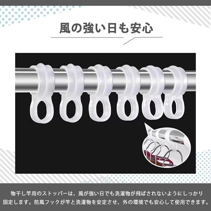 「風の強い日も安心」物干し竿用のストッパーは、風が強い日でも洗濯物が飛ばされないようにしっかり固定します。