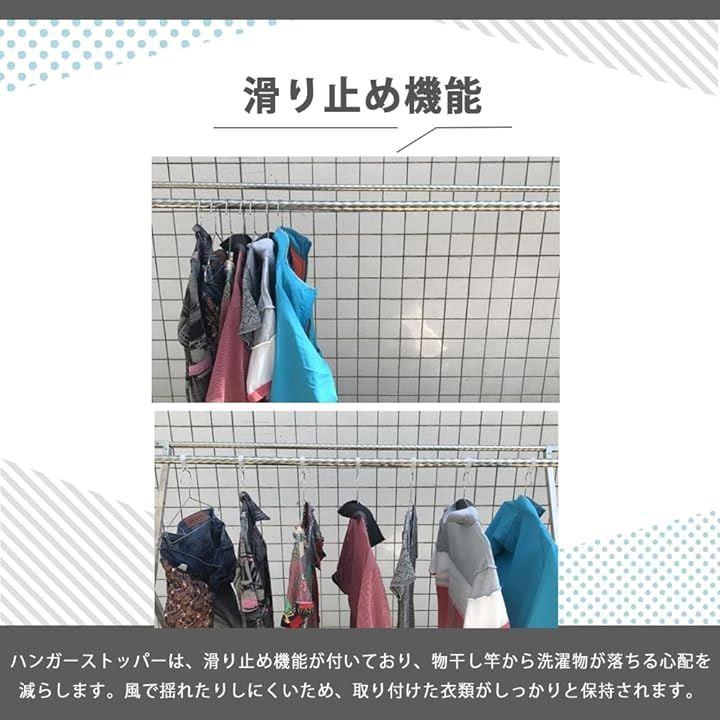 「滑り止め機能」ハンガーストッパーは、滑り止め機能が付いており、物干し竿から洗濯物が落ちる心配を減らします。