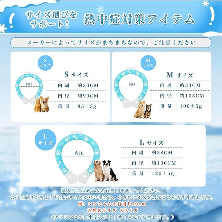 「サイズ選びが簡単。犬種別推奨ガイド」クールネック 犬は、購入前に首周りを計測し、適切なサイズを選択してください。