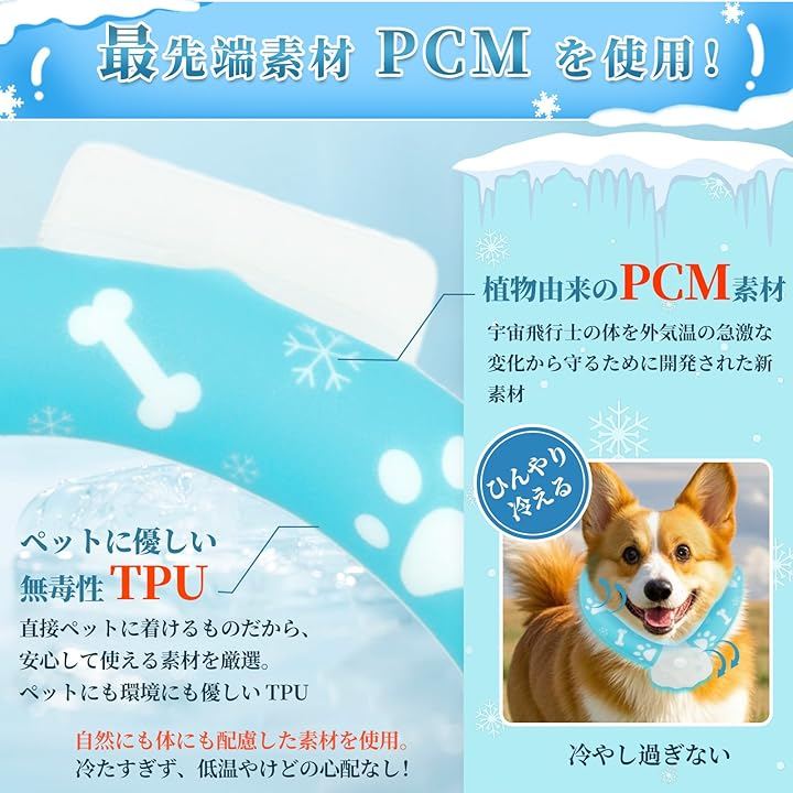 「簡単な使い方・PCM50%増量」犬クールネックは、NASA技術を採用したPCM素材を50%増量しております。