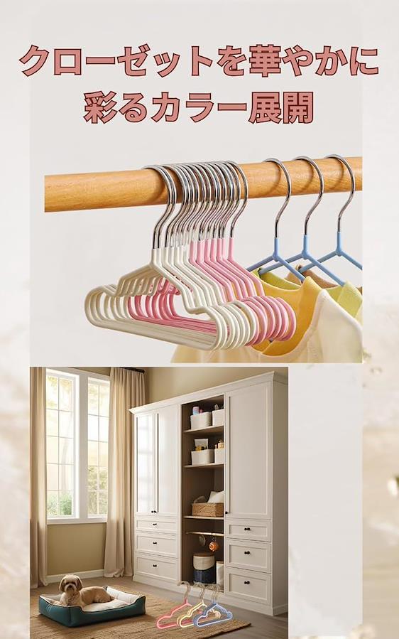 4. パステル調の可愛い3色展開で、クローゼットの中も華やかに 服の色や種類で使い分けもでき、写真映えもばっちり。