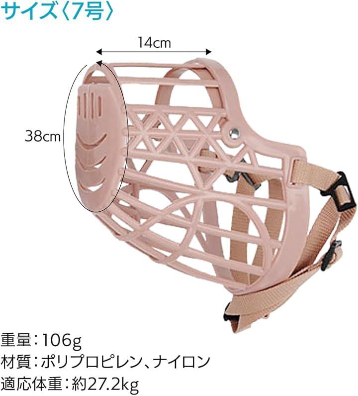 [7号]サイズ:マズル周囲38cm以内xマズル長さ14cm / 重量:106g / 材質:ポリプロピレン、ナイロン / 適応体重:約27.2kg