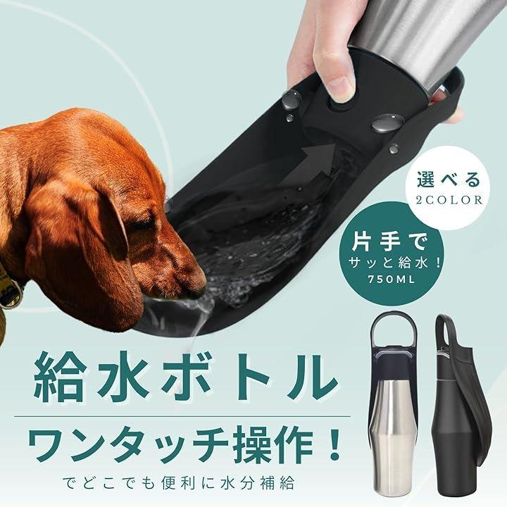 大容量&幅広飲み口でどの犬種にも対応:犬の散歩などに便利な水飲み器は、750mlの大容量で大型犬でもゆったりと水分補給が可能な給水ボトルです。