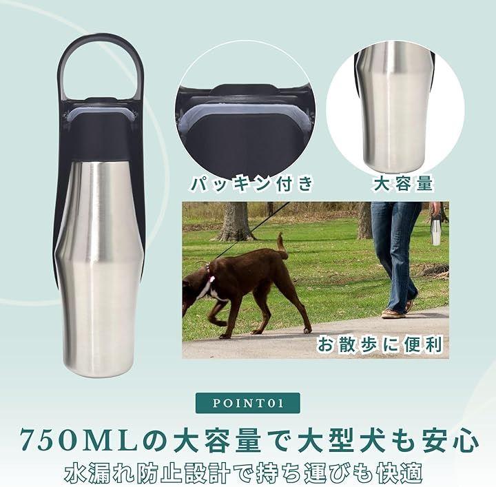 大容量&幅広飲み口でどの犬種にも対応:犬の散歩などに便利な水飲み器は、750mlの大容量で大型犬でもゆったりと水分補給が可能な給水ボトルです。