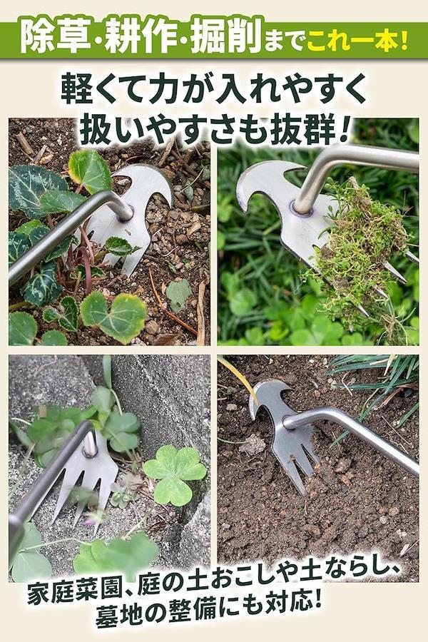 軽い力でも扱いやすい4本爪構造で、長時間の草取り作業でも疲れにくく、効率よく作業を進められます。