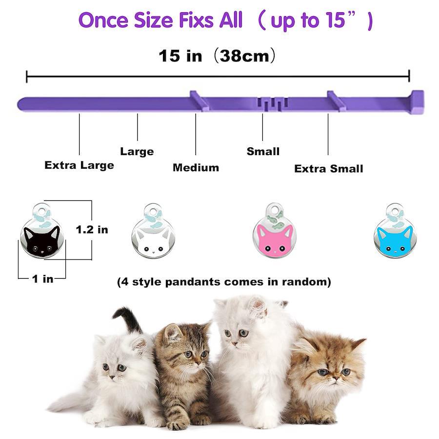 【エコノミー4パックの襟 + かわいい猫のペンダント4個】- 高いコストパフォーマンス。 この4本パックは、多頭飼いの猫に最適で、お金を節約して唯一の猫に8ヶ月分の備蓄をしたい場合。 パックには4つのかわいい猫のペンダントの選択も含まれています。落ち着きのある襟に結ぶことができます。 猫が毎日着用できる4色展開で、他の首輪にも付けられます。【どのように動くのか】 - 首輪には母猫が生み出す一匹のフェロモンを使用し、子猫を落ち着かせます。 猫は一生を通してフェロモンに覚えて、反応し、ストレス関連行動を改善します。 ラベンダーの天然エッセンシャルオイルは猫のストレスを軽減し、不安を克服するのに役立ちます。 一人で感じたり、慣れない環境を恐れている猫、獣医師、雷雨などに適しています。【60日間落ち着く首輪】 - 猫を落ち着かせる首輪は、あらゆる年齢や犬種の猫にお使いいただけます。 60日間も落ち着きのあるフェロモン、天然ラベンダーオイルを放出し続ける襟です。 最良の結果を得るために、連続使用後 2 ヶ月ごとにカラーを交換してください。 過度の鳴き声、マーキング、スクラッチ、社会的または攻撃的な行動にさよならしましょう。【調節可能で快適】- 首輪は調節可能で、どんな猫のサイズにも合います。15インチ/ 38 cmの長さで調節可能。 猫首を刺激しない柔らかいゴム素材を採用。 中毒性なし、低刺激性、化学薬品不使用、ペットにも人間にも無害です。【注意】お客様の声と実験による。 猫への落ち着き効果は、着用時間、外部環境、猫の遺伝子など多くの要因に影響されます。 つまり、猫 カーム サークルは猫の気分に落ち着きを与える効果がありますが、猫の心を落ち着かせる襟がすべての猫に影響を与えるというわけではありません。 猫を落ち着かせる襟があなたの猫のために働かなかった場合は、ご連絡ください。 満足のいく解決策を提供します。