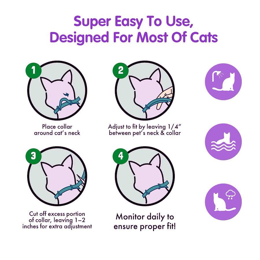 使い方:ステップ1:猫の首に首輪を配置します。ステップ2:調整のために指を2本ほど残します。ステップ3:切り取って余分な長さに処分します。