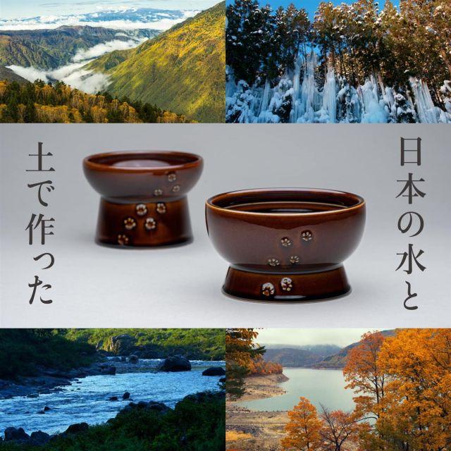 スタイル:脚付+ウォーターボウル◆商品名:猫壱猫用脚付ボウル美濃焼日本製(ブラウン,ウォーター)電子レンジ&食器洗浄機対応