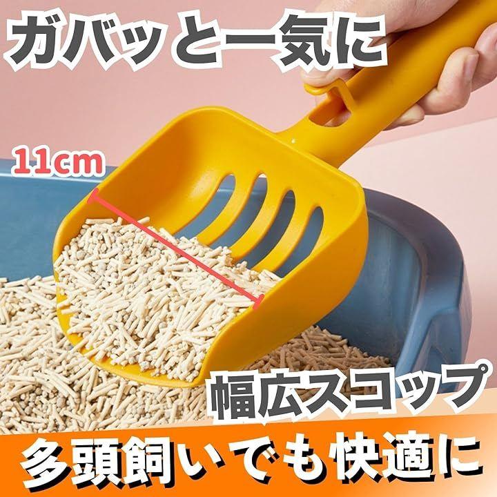 幅広のシャベル(約11cm)で一度にたっぷりすくえ、オカラ系や鉱物タイプのトイレ砂もスムーズにふるえます。