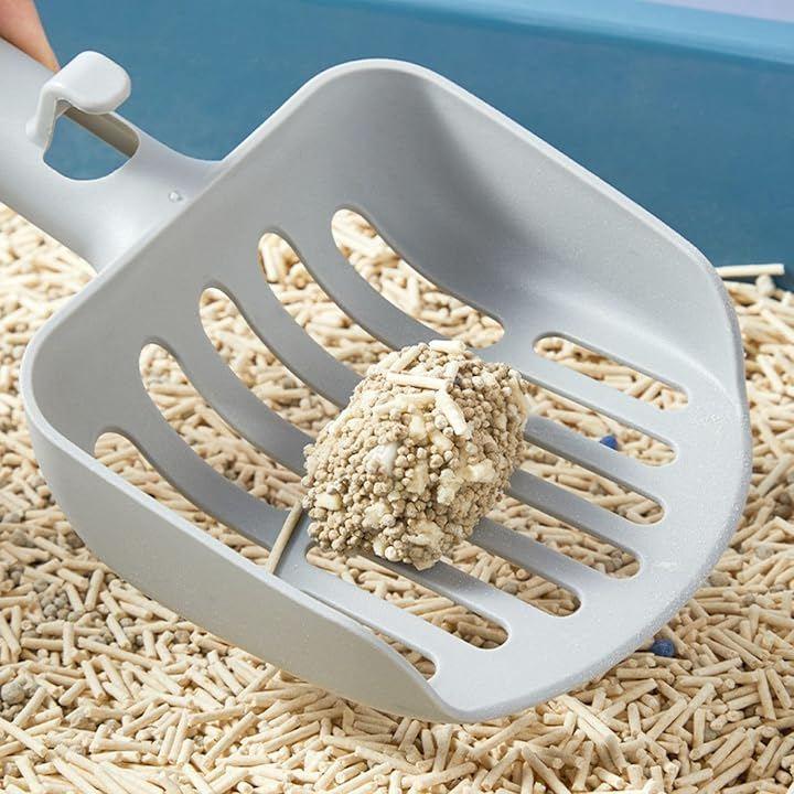 使用後は水で洗って清潔にし、フックで猫用トイレにかけて収納すれば場所を取りません。