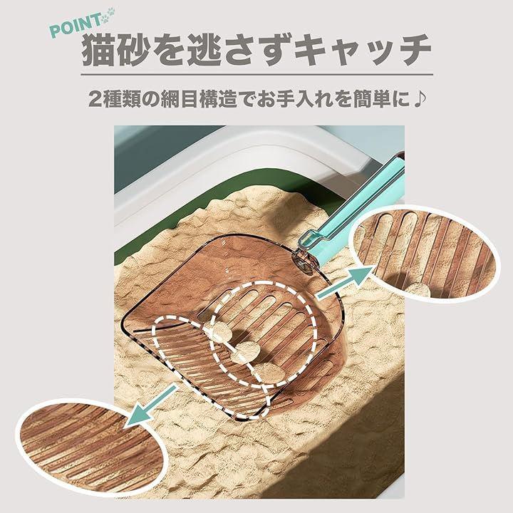 「2種類の網目」2種類の穴の間隔が設計されており、さまざまな猫砂に適しています。