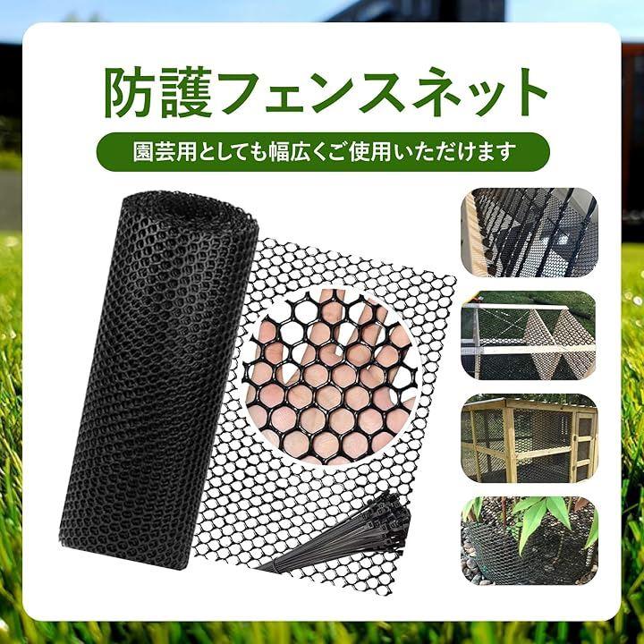 「商品詳細」セット内容:メッシュシート、結束バンド20本以上(長さにより異なります) カラー:ブラック サイズ:幅40cmx長さ3m/5m/10m 孔径:約0.8cm 材質:ポリエチレン *モニターの環境により、色の見え方に若干差が生じる場合がございます。