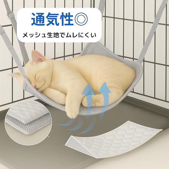 「製品概要」 暑い季節にぴったり。 本品は、ケージに吊り下げて使える夏用猫ハンモックです。