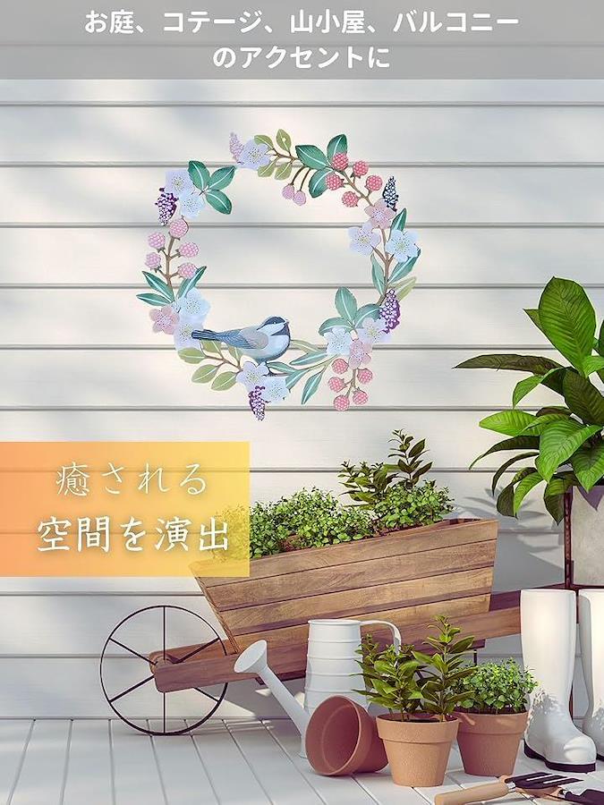 雀と花輪は、ドアや壁の装飾として、玄関ドア、リビングルームの壁、ダイニングルームの壁、クローゼット、窓、棚などお好みの場所に取り付けてください。