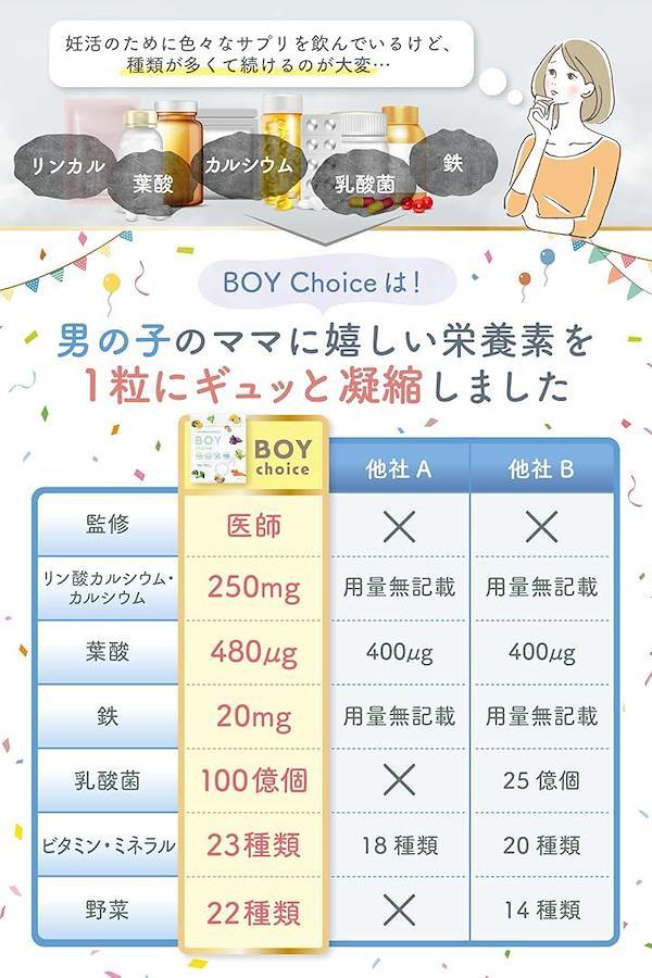 せっかく飲んでいただく以上、実感していただきたいとの思いから、BOYchoiceはカルシウム250mg・葉酸480μg・ 鉄 20mg・乳酸菌100億個と国が定める 栄養機能食品 水準以上の栄養素を含有・明記しました。