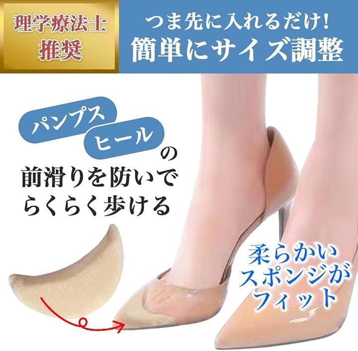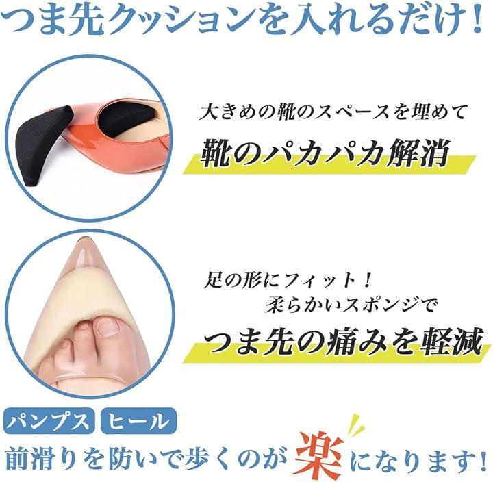 「歩くのが楽になります」柔らかいスポンジが靴のつま先にフィット。パンプス、ヒールの前滑りを防いで楽に歩けます。