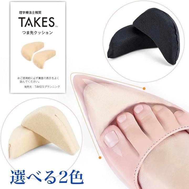 「商品仕様」商品サイズ/約7cmx4cmx厚み2cm、セット内容/ブラック1足(2個)、ベージュ1足(2個)、使用できる靴/パンプス、ハイヒール、スニーカー、ブーツなど、TAKES取扱い説明カード付き