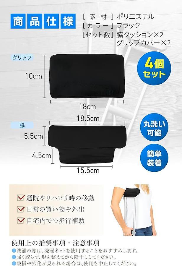 「商品仕様」 素材:ポリエステル/サイズ:画像参照/セット数:4個セット(脇クッションx2、グリップカバーx2)/カラー:ブラック