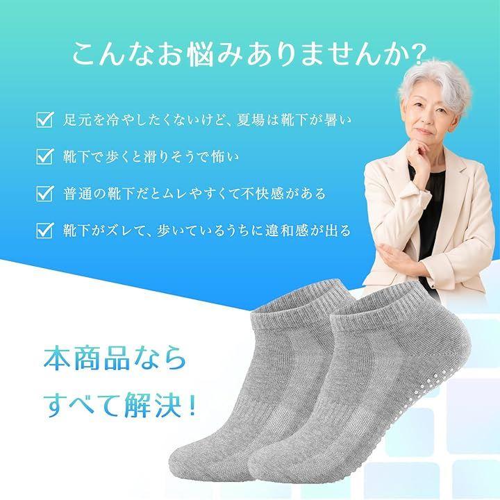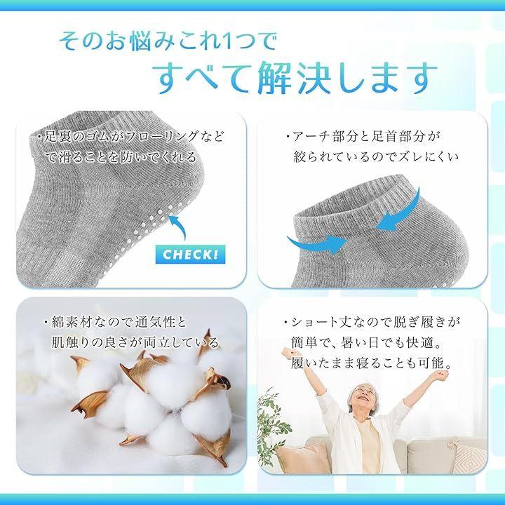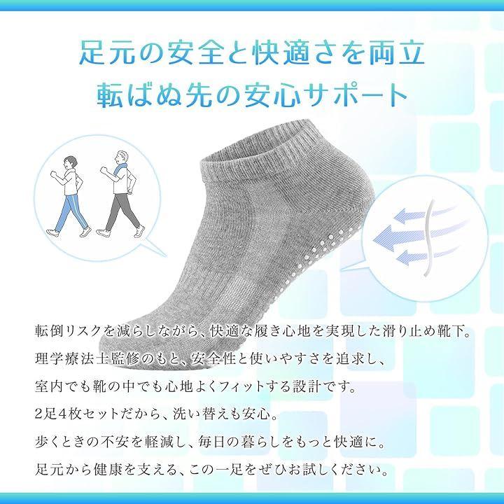 「転倒防止のポイント」 強力なグリップ力:足裏全体に施された滑り止めが、床をしっかりと捉え、滑りを防止します。