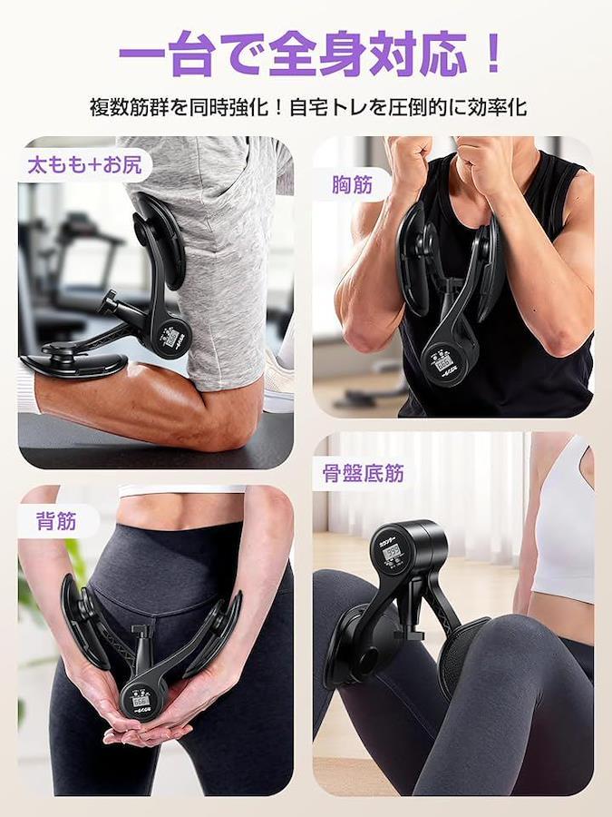 内転筋はもちろん、太もも・股関節・背中・腹筋・腕まで全身の筋肉を効率的に鍛えられる画期的アイテム。