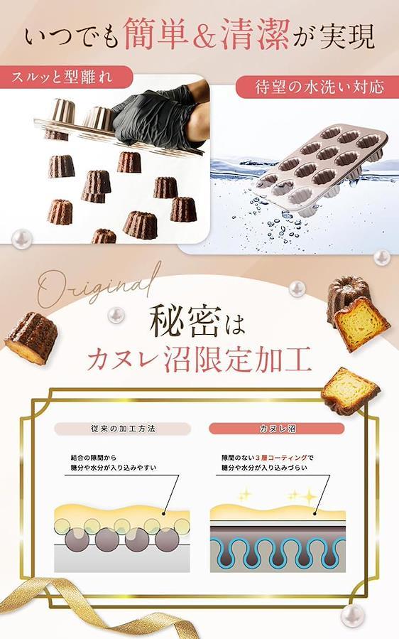 「お手入れ楽チン特殊加工」カヌレ 沼 限定特殊 シリコン 加工済みだからお菓子型なのに水洗いができます。
