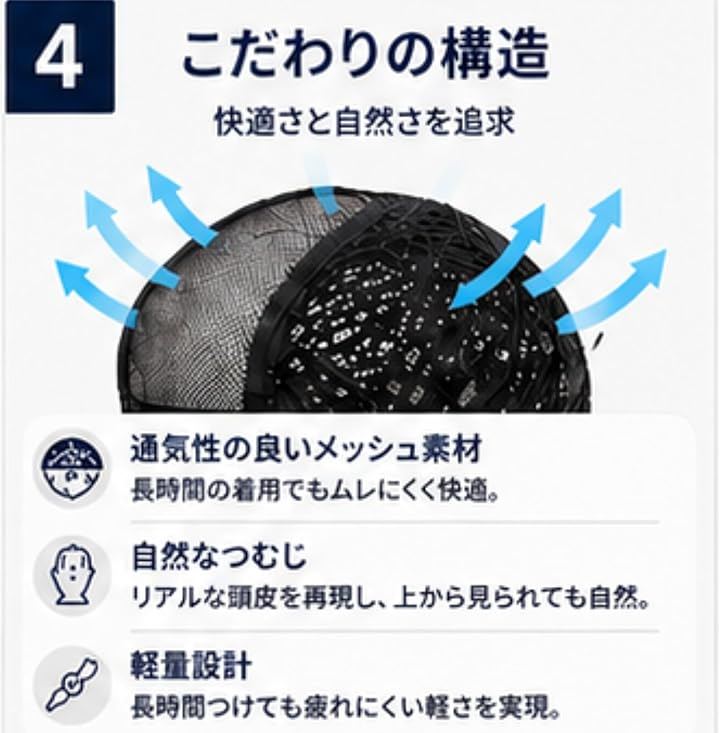 通気性の良い、高級ネットを使用しておりますので、まるで人毛のような自然さを演出します。