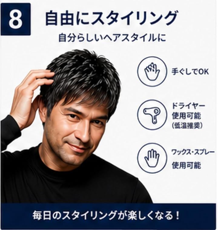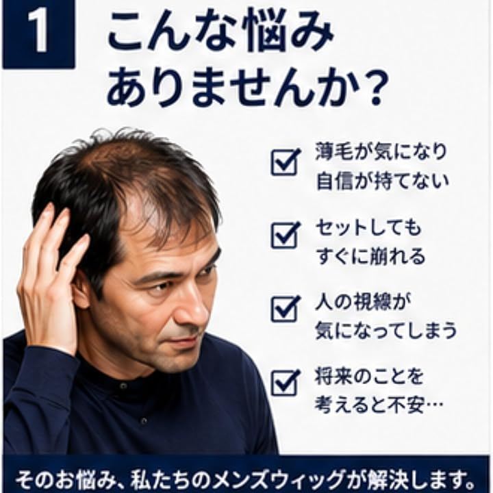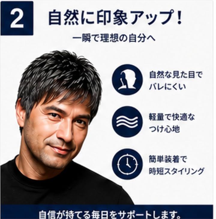 中高年の方にフィットする、自然な色合いのメンズウィッグです。
