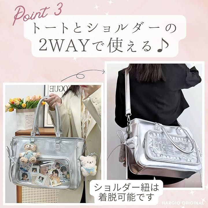 ショルダーバッグとトートバッグの2WAYでお使いいただけます。使い勝手抜群の痛バッグです。ショルダー紐は 着脱可能です。