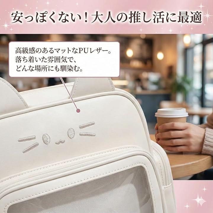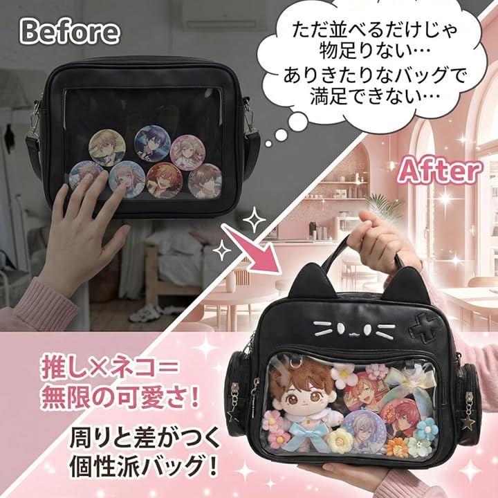 このバッグならクリア窓越しに見えるあなたの「推し」が、ネコ耳フレームに収まり、まるでネコになったような愛くるしい姿に。
