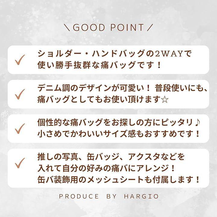 こだわりを詰め込んだ、HARGIOオリジナルの痛バッグが出来ました。ショルダー・ハンドバッグの2WAYで利用できて使い勝手も抜群です。