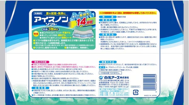 ■ Precautions· カバーなしで直接肌に当てないでください(ジェル直接接触は不快感を与えることがあります)· 冷凍庫に長時間放置しないでください(ジェルが固くなりすぎる場合があります)· 使用前に外袋の破損・液漏れがないか確認してください。異常がある場合は使用しないでください· 乳幼児が一人で使用しないよう保護者が管理し、小児の手の届かない場所に保管してください