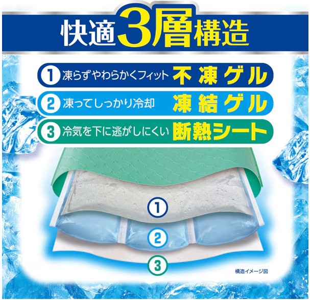 ■ Key Ingredients冷却ジェル:水・ポリアクリル酸ナトリウム(保水性高吸収ポリマー)・塩化ナトリウム(凝固点降下);カバー:やわらかポリエステル不織布(洗濯可)