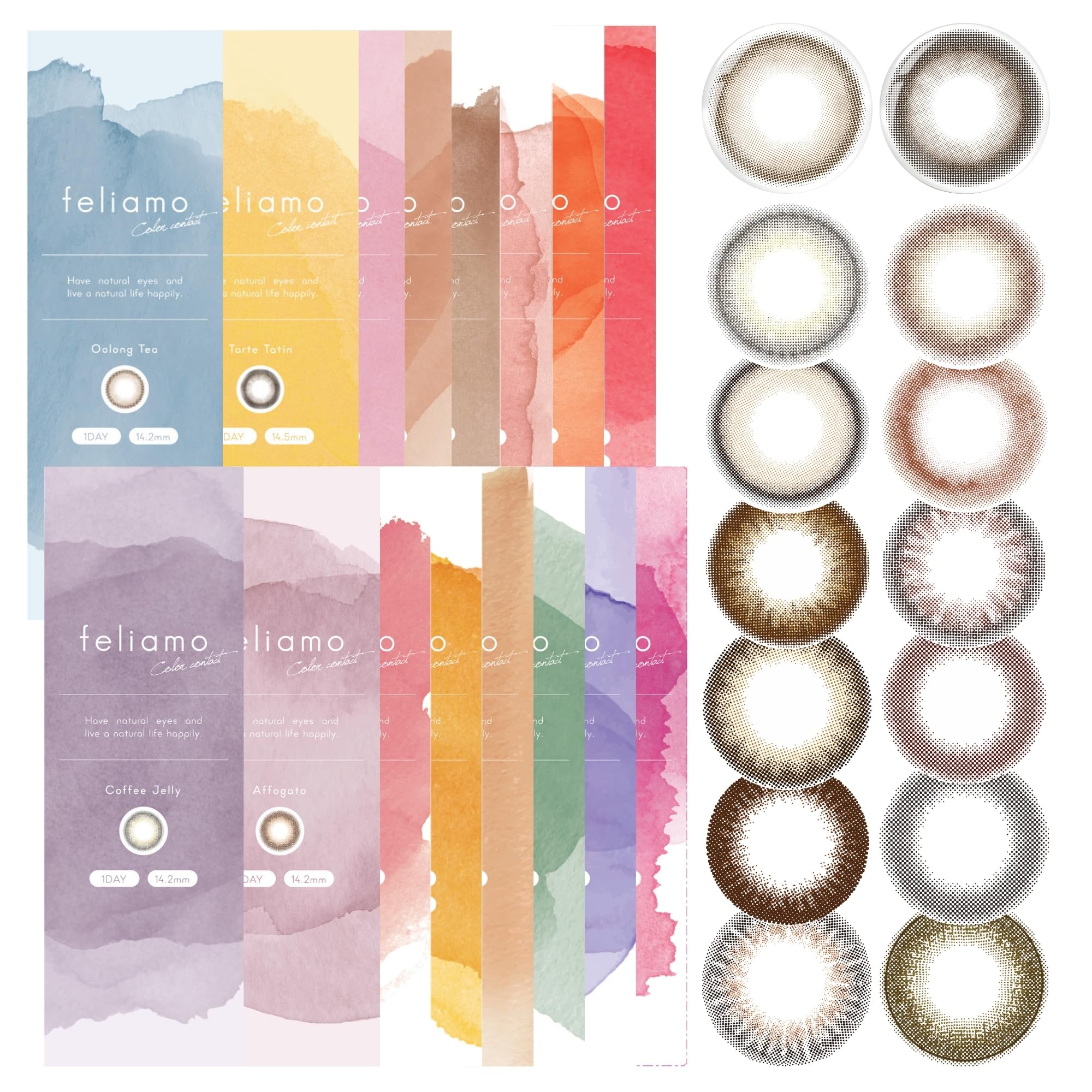 [どんな瞬間にも溶け込む 誰からも愛される瞳へ 白石麻衣 イメージモデル カラコン feliamo ] - Coffee Jelly ( コーヒーゼリー ) - さりげなく瞳の印象を引き立てるうるつやニュアンスカラーの裸眼風レンズ [LENS FEATURE]【UVカット】肌や瞳に有害といわれ、白内障などの眼病を引き起こす危険性のある紫外線をカット【イオン性】水分を多く含み酸素を通しやすいため瞳への負担が少なく、快適な装用感【高含水】水分を多く含むやわらかい素材で、瞳に違和感なく快適なつけ心地【レンズ構造】サンドイッチ構造のため、角膜に色素が触れない【レンズ形状】フチを丸みのある形状にすることで自然な装用感を実現 [1箱入数]10枚 [BC]8.6mm [使用期間]終日装用、一日交換 ( ワンデー )[含水率]55% [DIA]14.2mm [承認番号]22900BZX00118000 コンタクトレンズは高度管理医療機器として、販売業者には適切な品質管理体制が定められています。万が一商品に不具合等ございましたら、店舗ページリンクより販売業者へお問い合わせください。 ※当店は【ハンドクリーム】ノベルティ対象外店舗でございます。ご了承くださいませ。