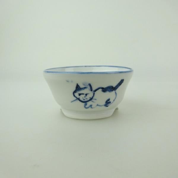 盆栽鉢 ゆうき祥石 小鉢 長辺 約 6.5cm 丸鉢 絵鉢 猫 ネコ ねこ 足跡 肉球 釉薬 鑑賞用 観賞用 現品 新品