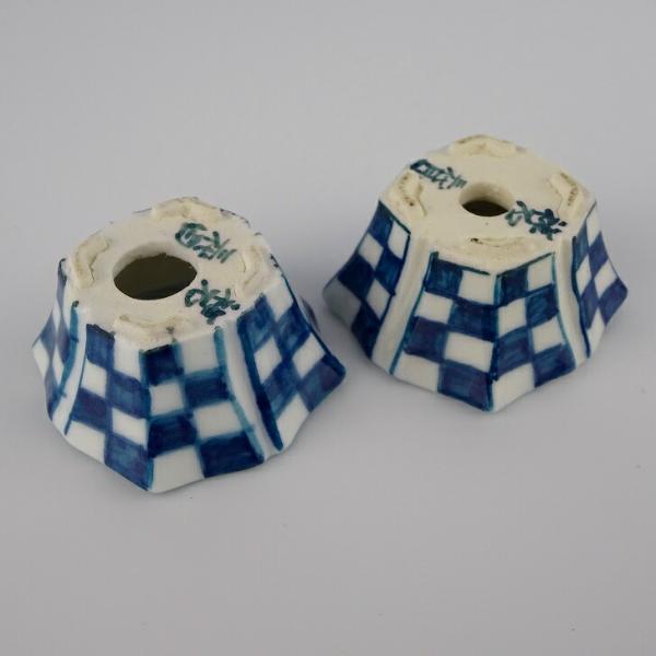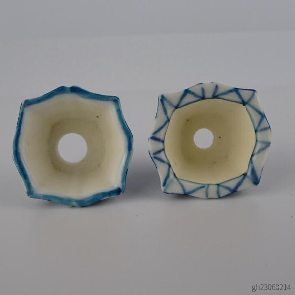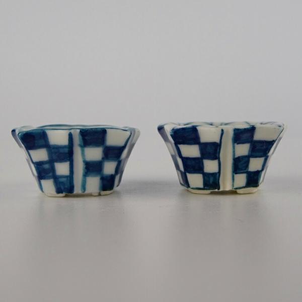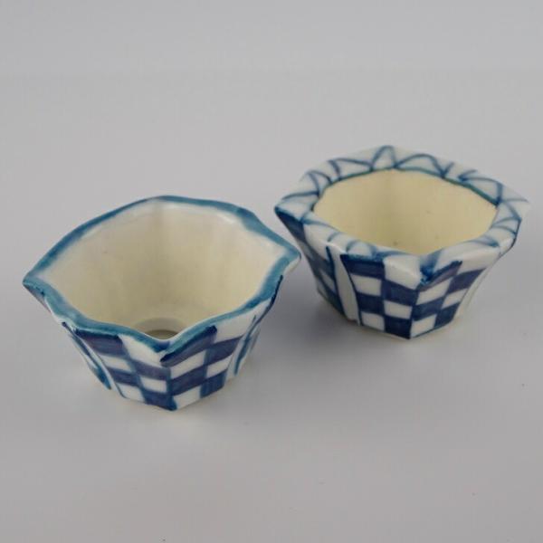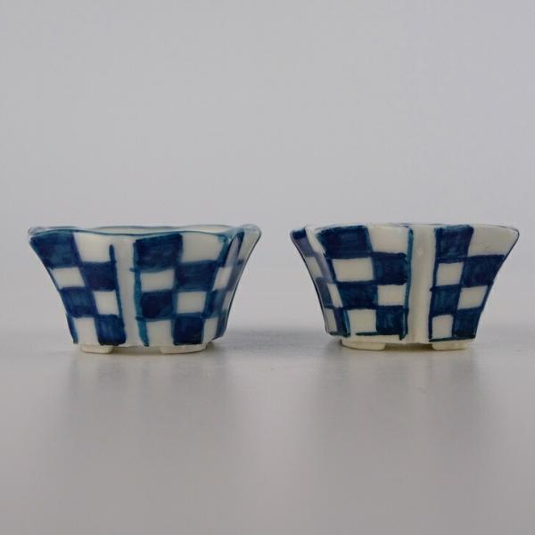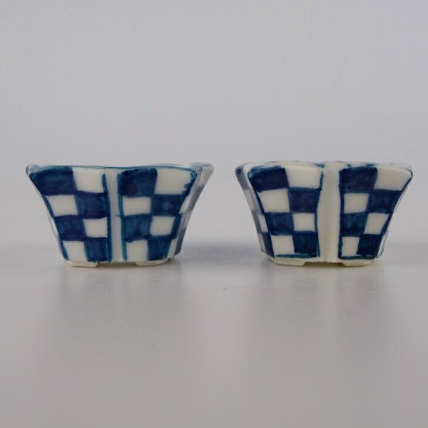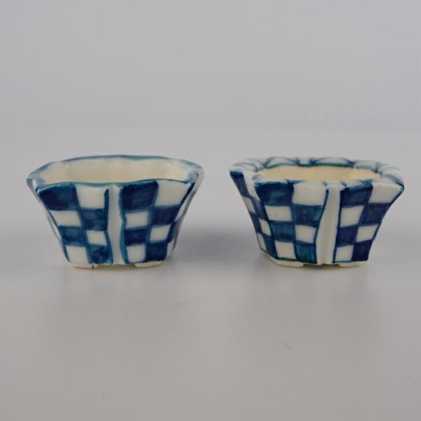 盆栽鉢 ゆうき祥石 2点セット 豆鉢 長辺 約3.5cm 輪花鉢 染付 格子 現品 新品