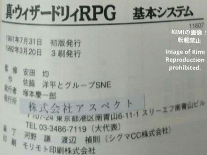 真 ウィザ-ドリィRPG 基本システム 本 1992/3/20 3刷発行 佐脇 洋平 (著), グループSNE (著), 安田均(監修)Wizardry RPG Basic System Book 1992 3rd Printing Written by Yohei Sawaki, Group SNE Supervised by Hitoshi Yasuda